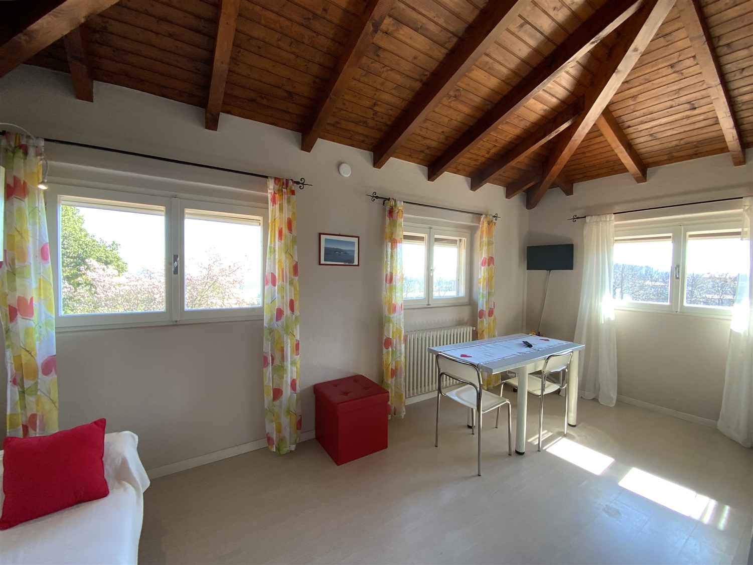 The surrounding garden is perfect for outdoor summer lunches; the Case Sparse location is just outside the center of Nebbiuno, in a green and very sunny area, the lakes highway passes nearby, the surrounding plants mitigate the view and noise.