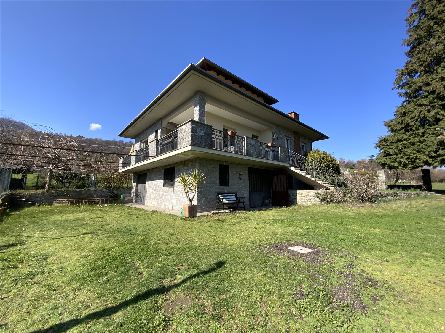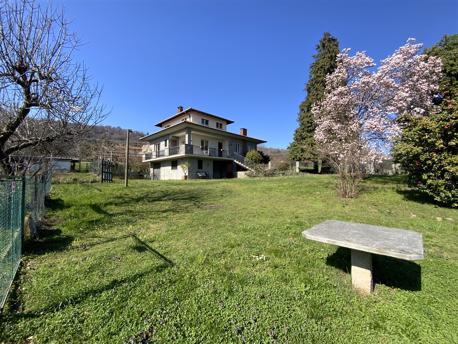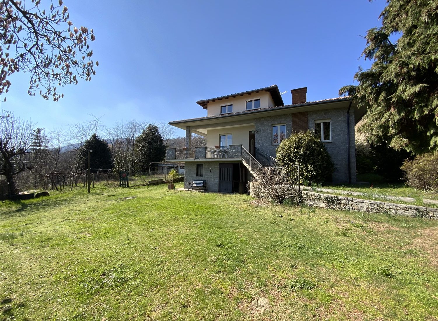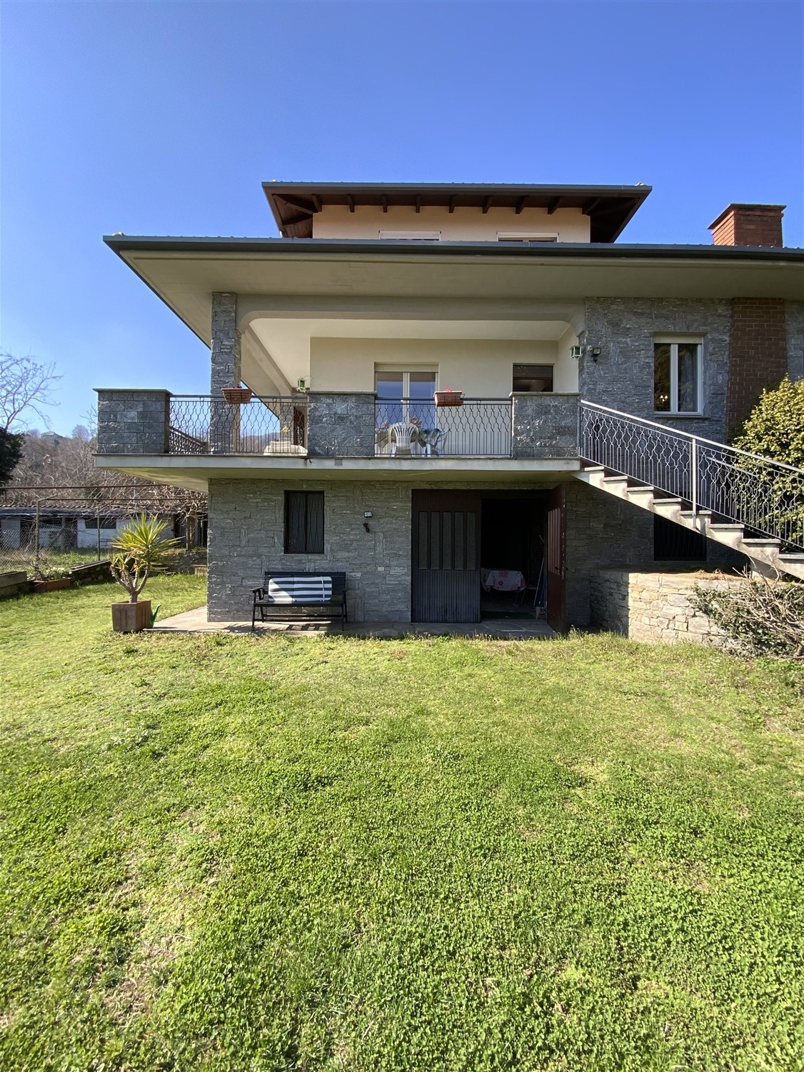 On the hills of Alto Vergante, a renowned area of Lake Maggiore, a large villa with two apartments and a large garden is for sale.