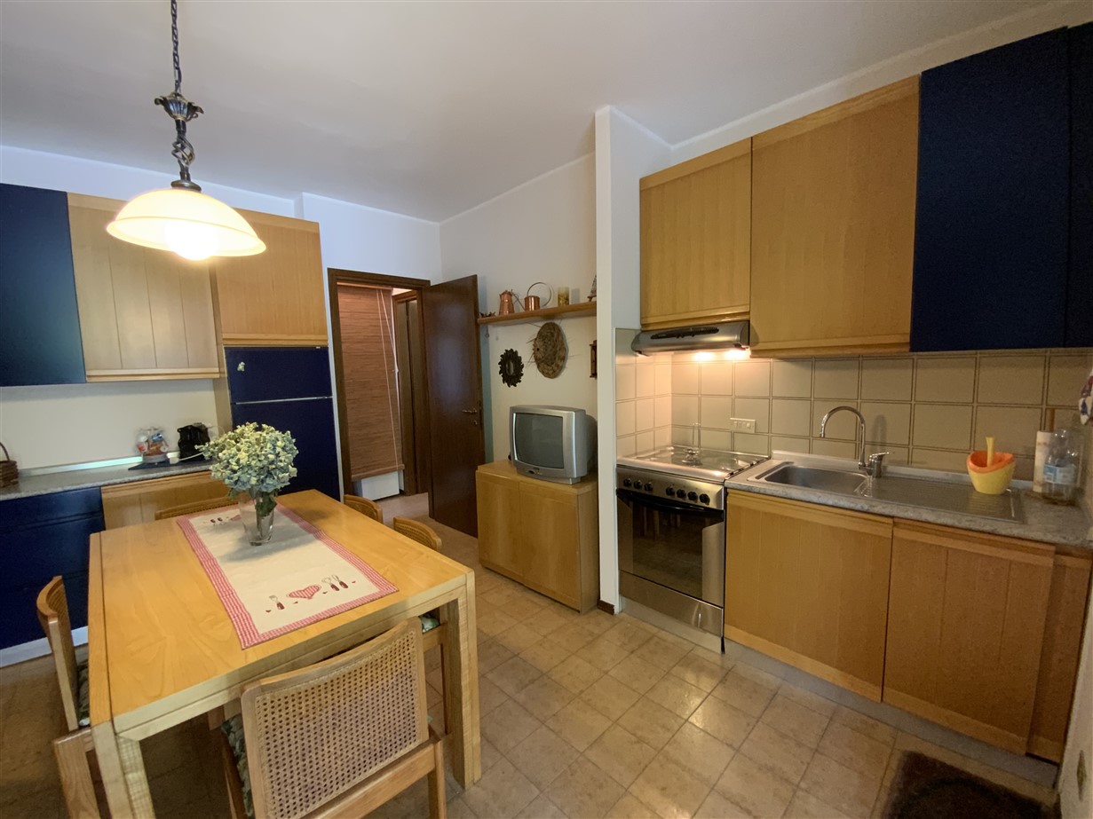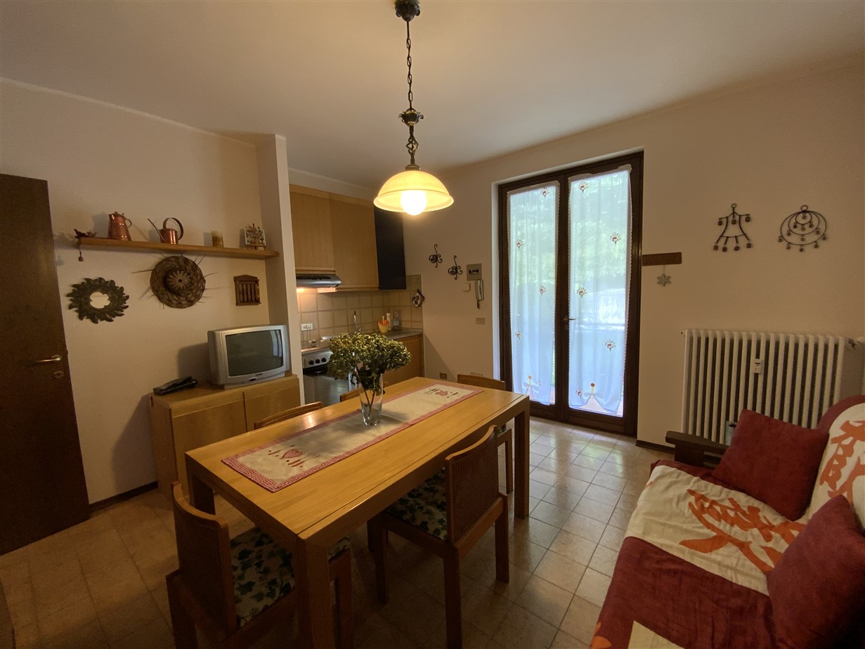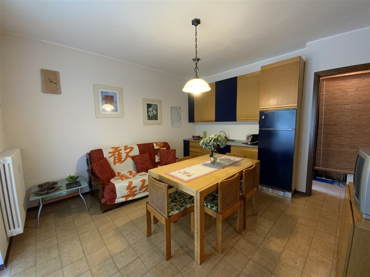 L’appartamento è così disposto: ingresso su soggiorno con cucina a vista, disimpegno, bagno con doccia e camera matrimoniale, piccola cantina al piano seminterrato.