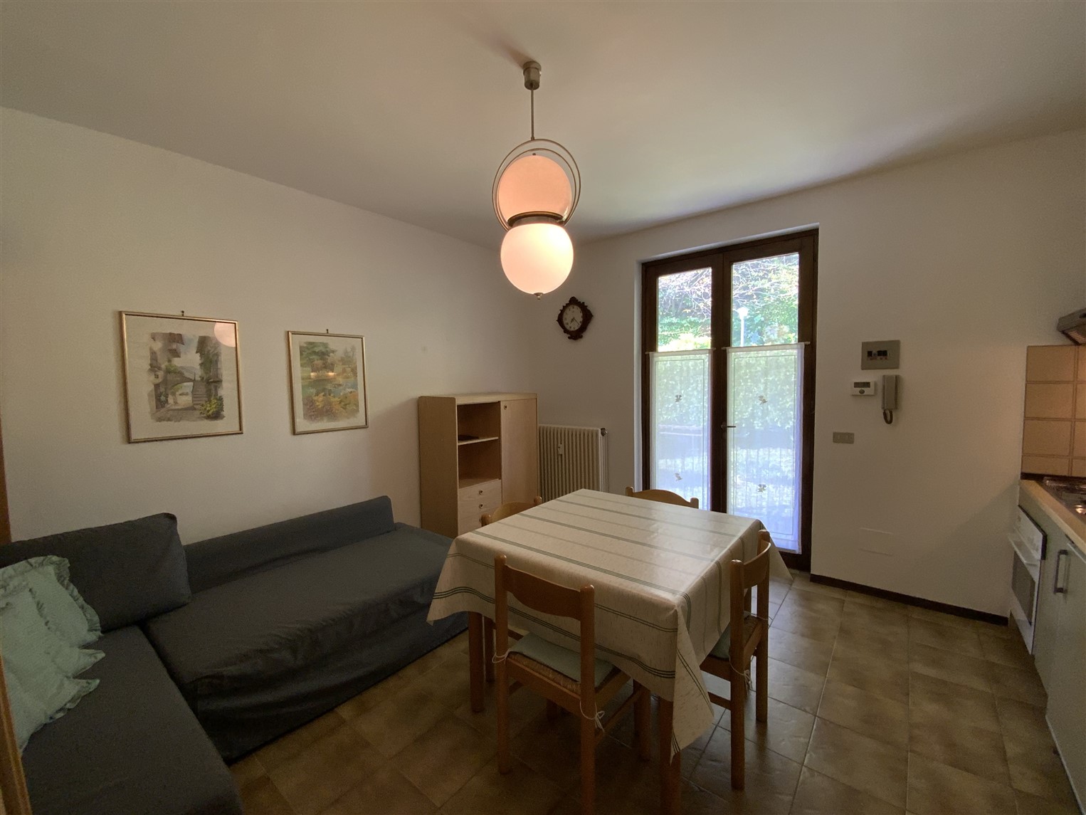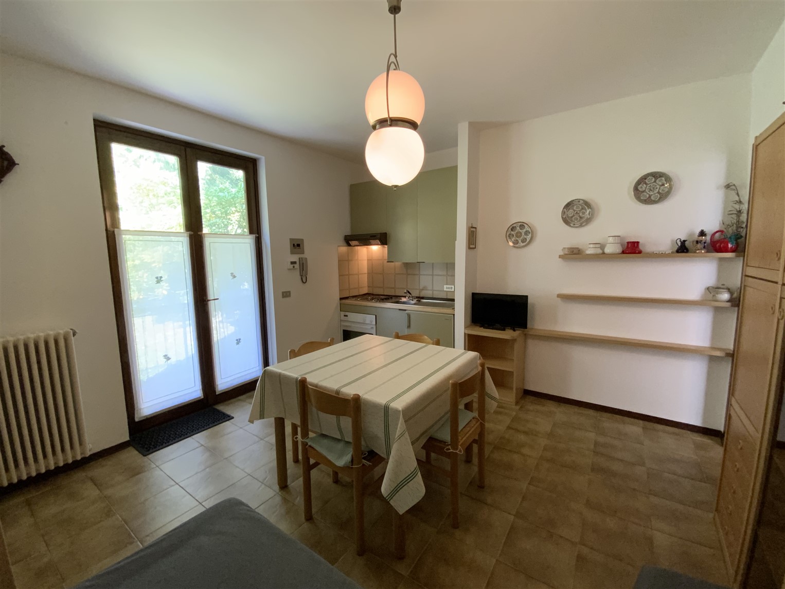 L’appartamento è così disposto: ingresso su soggiorno con cucina a vista, disimpegno, bagno con doccia e camera matrimoniale, piccola cantina al piano seminterrato.
