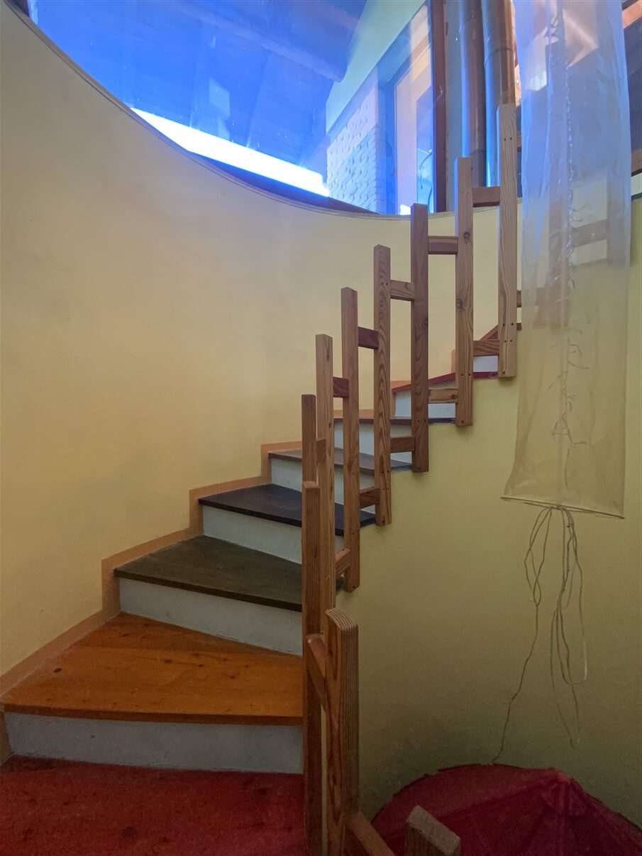 Al primo piano un ampio salotto con terrazzo, una camera e un grande locale con soppalco, a servizio del piano un bagno.