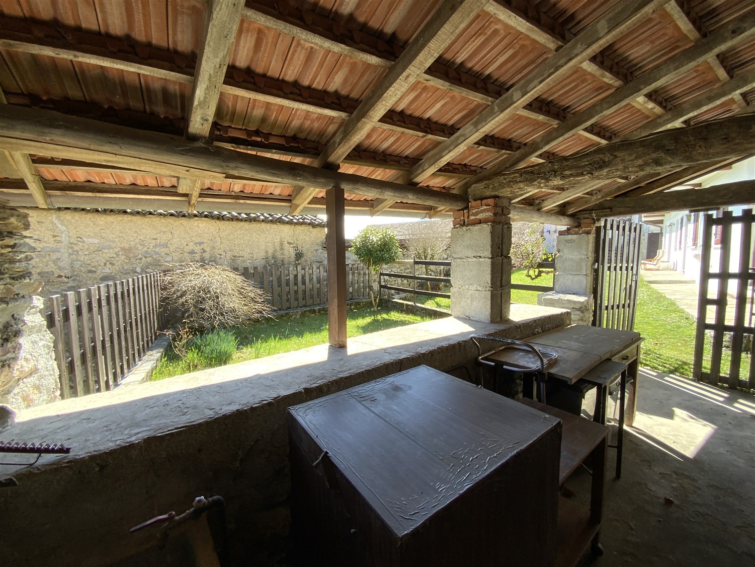 A completamento della proprietà, in fondo alla corte comune vi è un ampio portico coperto con un giardino in proprietà esclusiva, luogo ideale per soggiornare all’aperto in piena privacy.