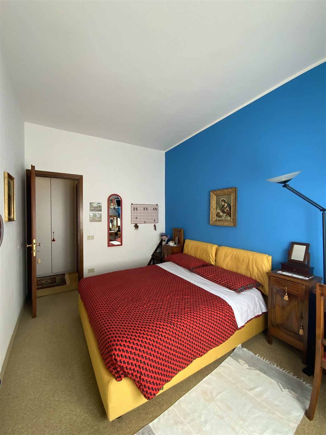 Il bilocale è disposto su due piani, il piano giorno ha un ampio locale con angolo cottura e accesso al giardino, una scala interna porta al piano superiore dove troviamo la camera matrimoniale, un bagno e lo spogliatoio.