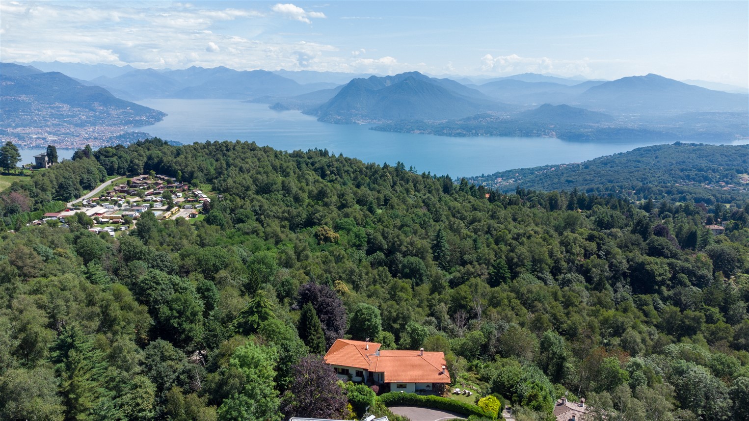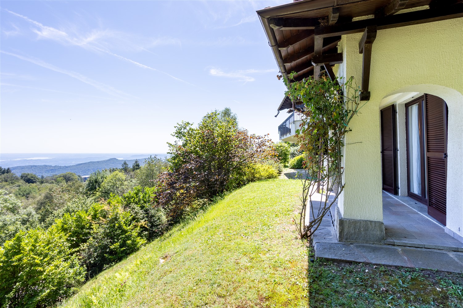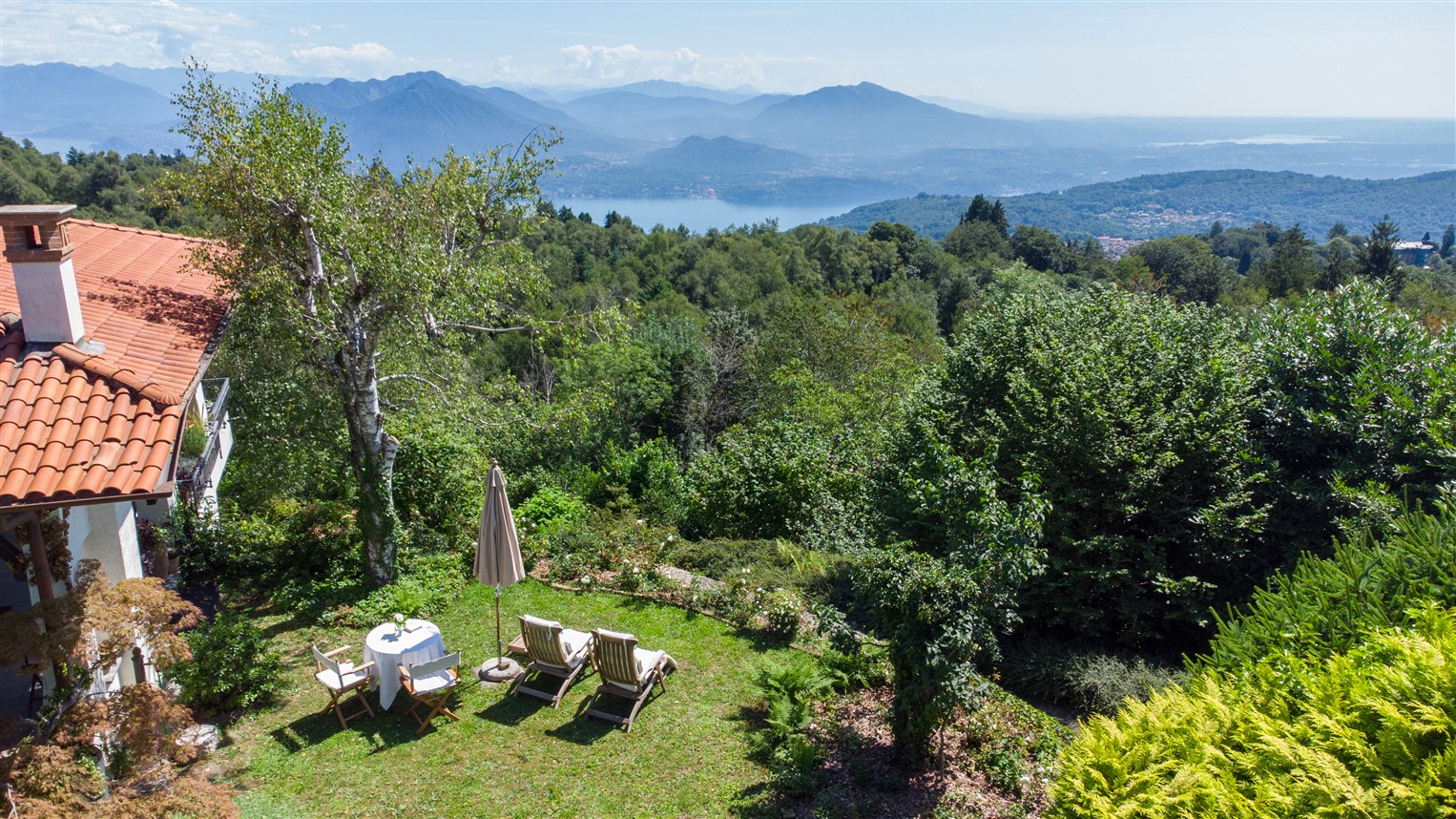 La proprietà oggetto di vendita è completamente indipendente, è in posizione dominante e riservata, ha un gradevole giardino privato posto su due livelli e gode di una panoramica vista sui laghi lombardi e con ampi scorci di lago Maggiore