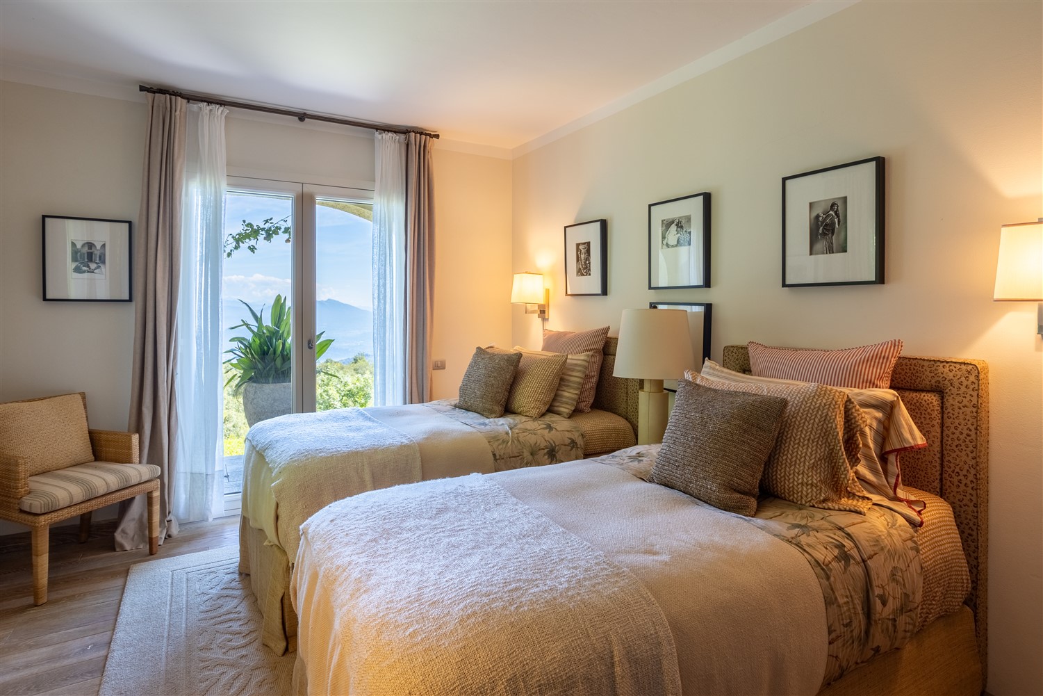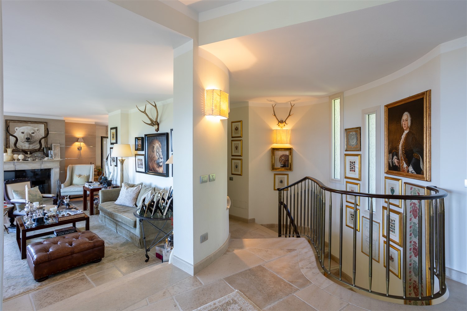 Al piano inferiore, da cui si accede da una bellissima scala in pietra troviamo il salotto tv, la zona notte ospiti con due camere matrimoniali e due bagni e una comoda cabina armadio.